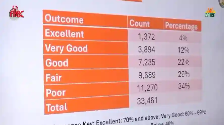 The breakdown shows that 1,372 applicants, representing 4 percent, were rated Excellent, while 3,894 candidates, or 12 percent, achieved Very Good. He added that 7,235 candidates, making up 22 percent, fell under Good. Another 9,689 applicants, representing 29 percent, were graded Fair, while 11,270 applicants, or 34 percent, were classified as Poor.