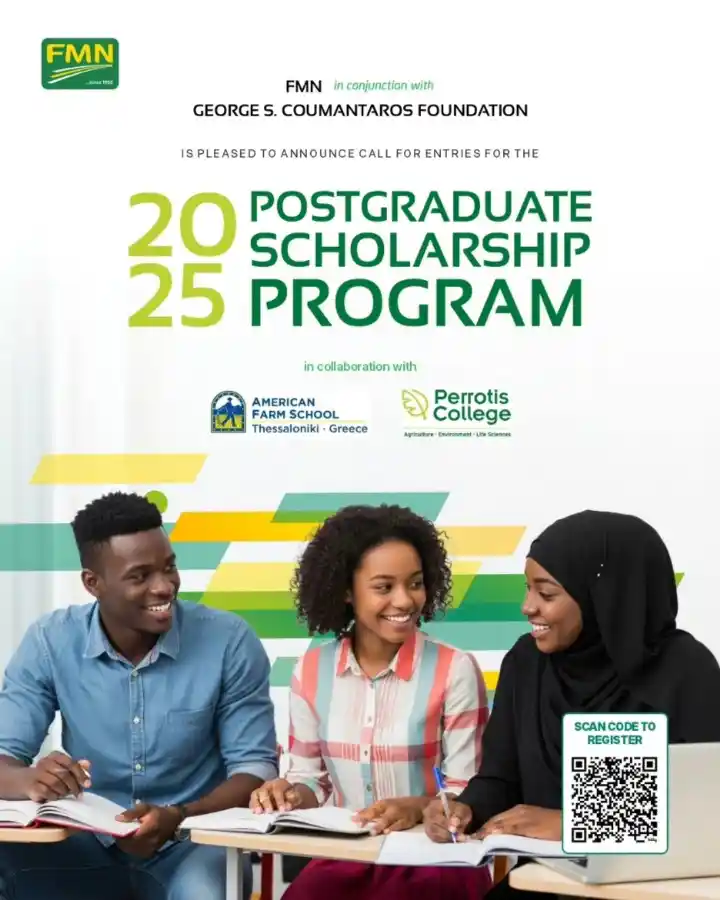 August 29, 2025 – The FMN (Flour Mills of Nigeria Plc) together with the George S. Coumantaros Foundation has announced that the 2025 Postgraduate Scholarship application is now open. In a release, the company stated, “FMN in collaboration with the American Farm School and Perrotis College is pleased to announce call for entries for the Postgraduate Scholarship 2025 Program.”