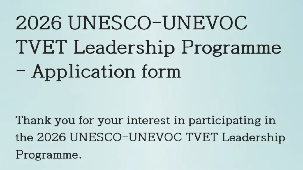Apply: 2026 UNESCO-UNEVOC TVET Leadership Programme
