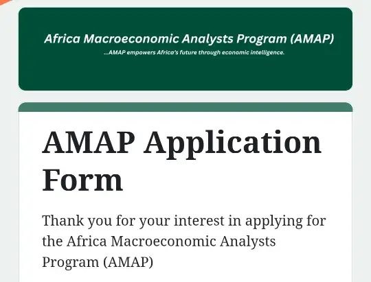 The Africa Macroeconomic Analysts Program (AMAP) has officially opened its application form for interested candidates. According to the organizers, “AMAP is a capacity-building initiative designed to equip emerging African students with advanced skills in macroeconomics analysis, data-driven policy insight, and economic intelligence.”