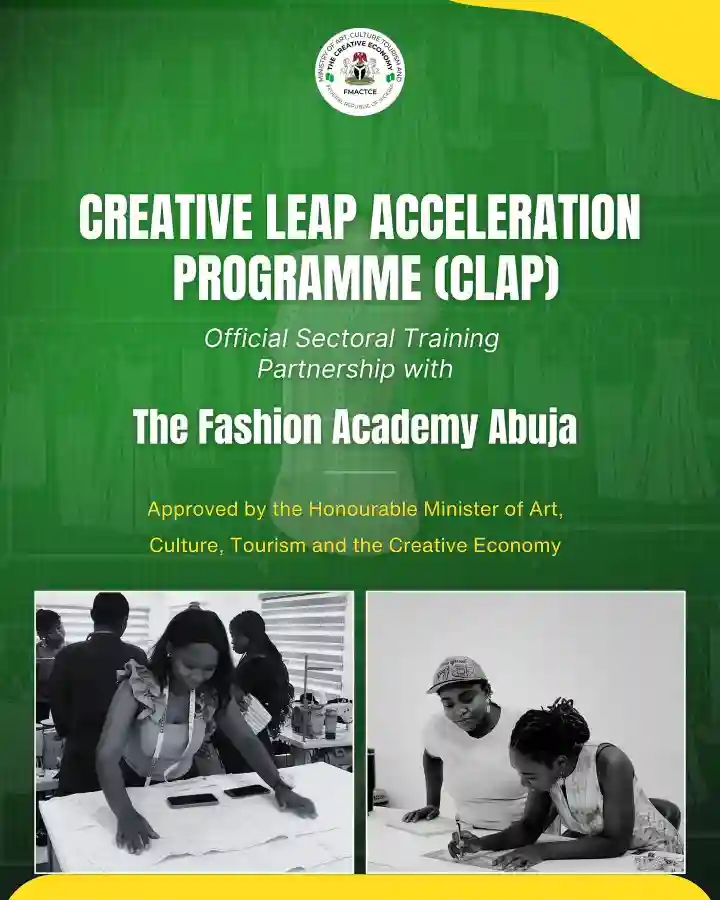 A major opportunity has just landed for Nigeria’s fashion creatives as the Federal Ministry of Art, Culture, Tourism and the Creative Economy has entered into a formal partnership with The Fashion Academy Abuja to launch a specialized training initiative under the Creative Leap Acceleration Programme (CLAP).