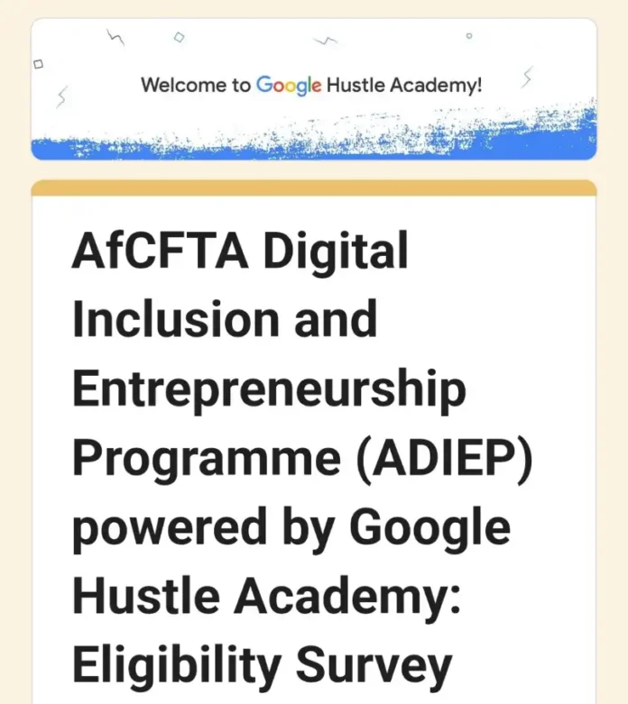 Applications are now open for the AfCFTA Digital Inclusion & Entrepreneurship Programme (ADIEP), a free virtual training initiative in partnership with Google Hustle Academy, designed to equip 7,500 SMEs in Nigeria and across Africa with practical digital and business skills for growth.