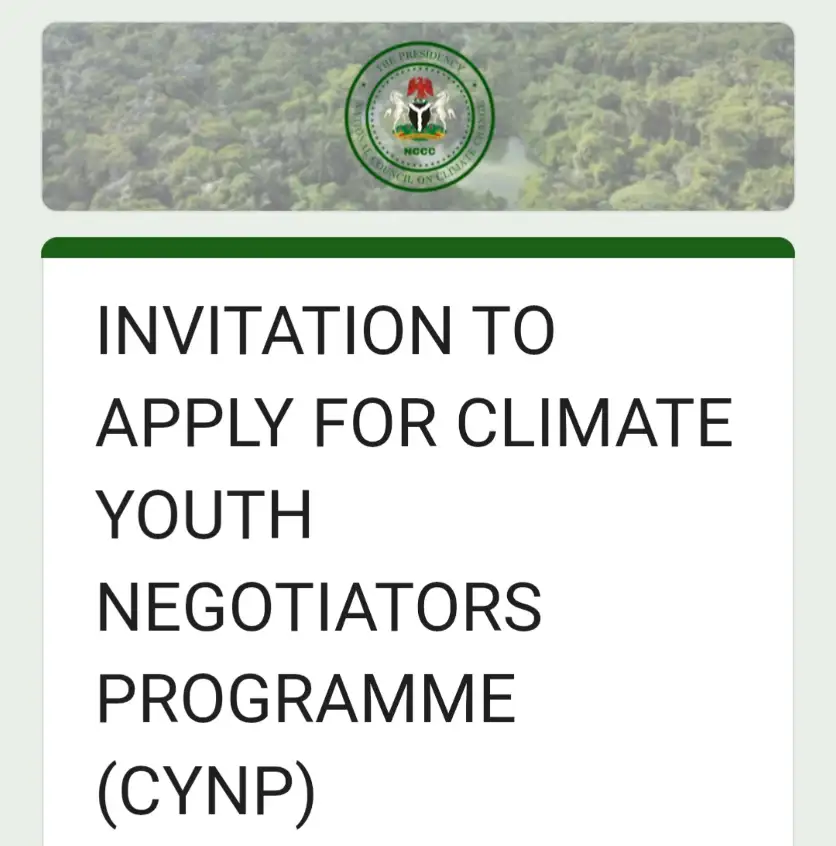 The National Council on Climate Change (NCCC) has opened applications for the Climate Youth Negotiators Programme (CYNP) 2026, an initiative aimed at strengthening Nigeria’s climate governance and preparing a new generation of young climate leaders.