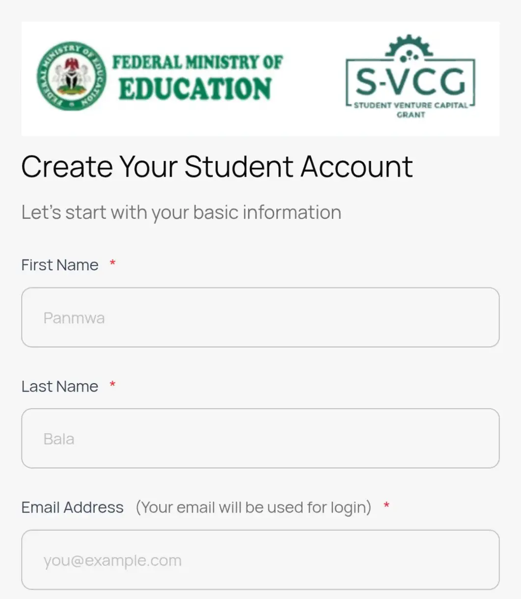 Eligible students are instructed to apply through the official portal link at https://svcg.education.gov.ng, where submissions are currently open for the ongoing cycle offering up to N50 million in milestone-based grant funding.