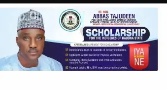 June 27, 2025 – The Rt. Hon. Abbas Tajudeen Scholarship Programme has opened its second application window for indigent students from Kaduna State today. This was announced by the Speaker of the House of Representatives, Rt. Hon. Abbas Tajudeen, Ph.D., GCON (Iyan Zazzau, Wamban Gwandu), on Friday, 27th June 2025.