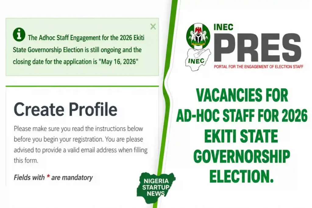 The Independent National Electoral Commission (INEC) has officially opened its portal for the recruitment of ad-hoc staff ahead of the 2026 Ekiti State Governorship Election. The registration is being conducted through the INECPRES portal and is strictly for eligible applicants residing in Ekiti State.