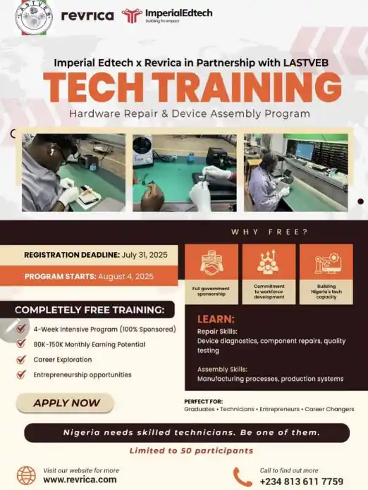 Imperial Edtech and Revrica have partnered with the Lagos State Technical and Vocational Education Board (LASTVEB) to launch a fully sponsored Hardware Repair & Device Assembly Program in a major step toward boosting technical skills in Nigeria.