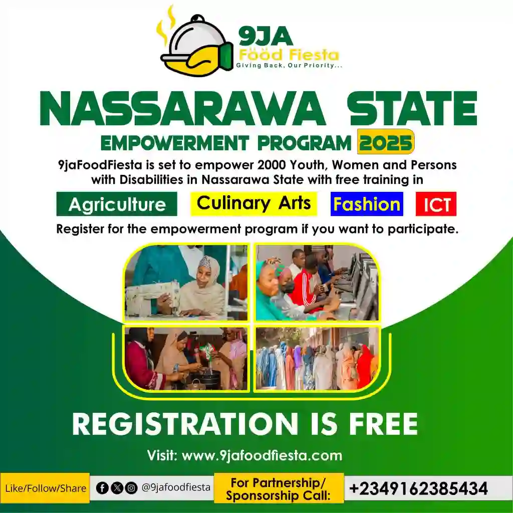 August 17, 2025 – The Nasarawa State Government has announced a new empowerment program aimed at training 2,000 youths, women, and persons with disabilities through the 2025 9ja Food Fiesta.