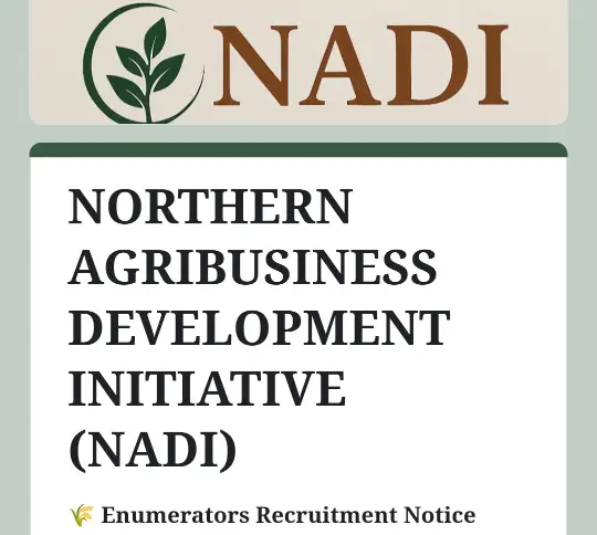 The Northern Agribusiness Development Initiative (NADI) has officially announced the recruitment of Enumerators to support its expanding agricultural programs across Northern Nigeria. The initiative, established in 2023, is focused on transforming the region’s agricultural system through modern techniques, strategic partnerships, and community empowerment.