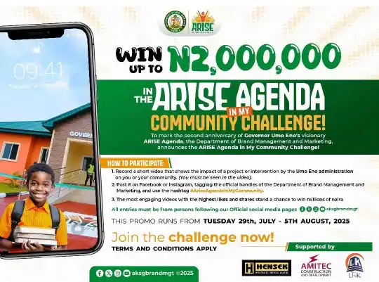 To celebrate the second anniversary of Governor Umo Eno’s ARISE Agenda, the Department of Brand Management and Marketing has introduced the ARISE Agenda in My Community Challenge. The initiative aims to showcase how government interventions have directly improved lives and communities.