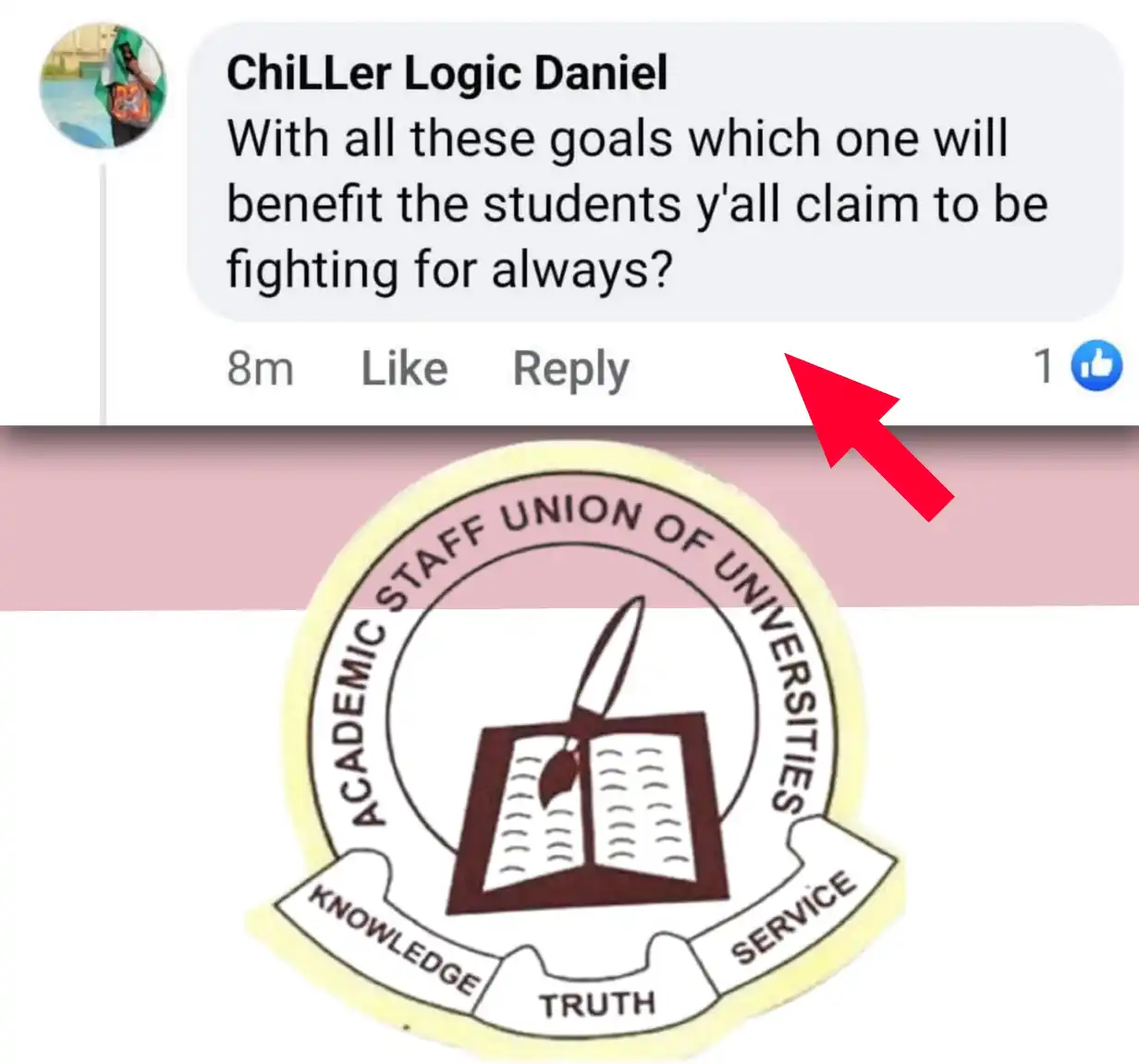 Trending now is the Academic Staff Union of Universities’ (ASUU) response to a Facebook user, ChiLLer Logic Daniel, who questioned whether the union’s goals truly benefit students.