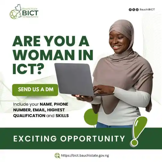 June 4, 2025 – Bauchi State Bureau for Information and Communication Technology (BICT) has announced an exciting opportunity for women with skills in tech. In a public message on Facebook, BICT stated, “ARE YOU A WOMAN IN ICT? SEND US A DM.”