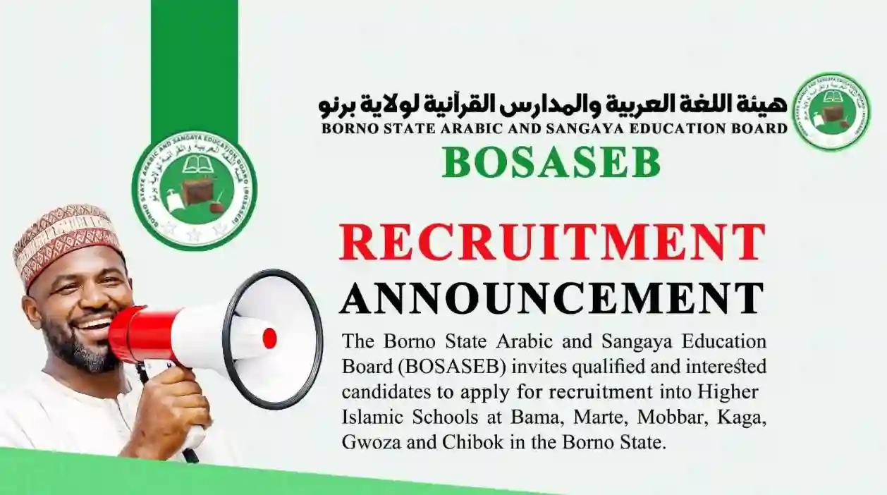 The Borno State Arabic and Sangaya Education Board (BOSASEB) has opened its recruitment portal and is inviting qualified and interested candidates to apply for recruitment into Higher Islamic Schools located in Bama, Marte, Mobbar, Kaga, Gwoza and Chibok in Borno State. This recruitment exercise is part of the Board’s ongoing effort to strengthen the teaching workforce in Islamic education institutions across the state.