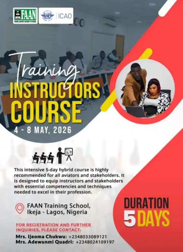 The Federal Airports Authority of Nigeria (FAAN), in partnership with the International Civil Aviation Organization (ICAO) under its TRAINAIR Plus Programme, has opened registration for a specialised Training Instructors Course (TIC) scheduled to hold in Lagos.