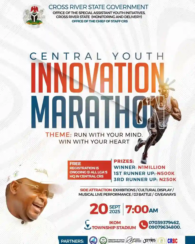 The Cross River State Government through the Office of the Special Assistant Youth Initiatives Monitoring and Delivery, Office of the Chief of Staff, has announced the Central Youth Innovation Marathon scheduled for September 20, 2025.
