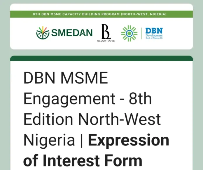 The Development Bank of Nigeria (DBN) has opened the Expression of Interest form for the 8th Edition of the DBN MSME Engagement in North-West Nigeria. The programme is funded by DBN and delivered in the region by Brand Locus Limited in collaboration with SMEDAN. It is a capacity building program designed to support entrepreneurs and Micro, Small and Medium Enterprises (MSMEs) that are ready to strengthen their operations and unlock new growth opportunities.