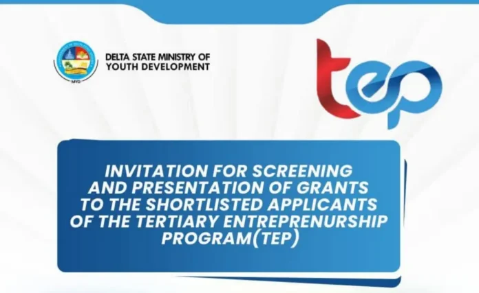 The Delta State Ministry of Youth Development has invited shortlisted applicants for the Tertiary Entrepreneurship Programme (TEP) to attend a screening exercise and grant presentation scheduled for Thursday.