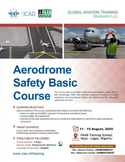 The Federal Airports Authority of Nigeria has announced the Aerodrome Safety Basic Course to equip newly recruited airport safety officers with essential skills for maintaining safety standards within aerodromes.
