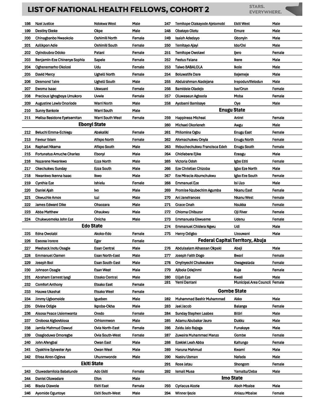 Below is the full list of National Health Fellows, Cohort 2 for all States.