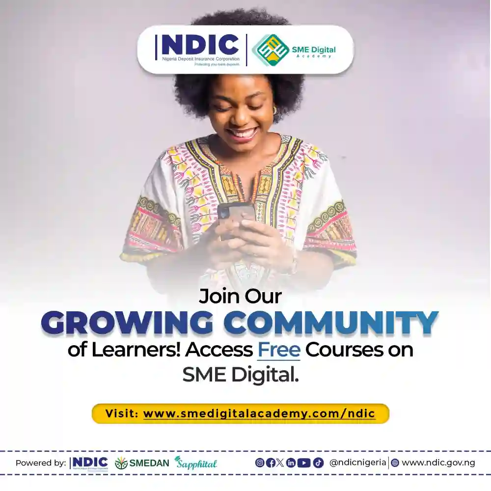 Interested entrepreneurs are encouraged to register and start learning for free by visiting https://smedigitalacademy.com/ndic. This program is expected to support financial inclusion, improve access to funding, and boost the competitiveness of small businesses across Nigeria.