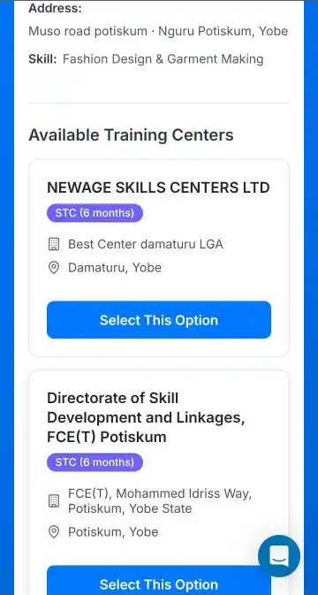Now, after clicking on “Select Training Centre,” you will see a list of available training centres to choose from. Click on “Select This Option” for your preferred centre.