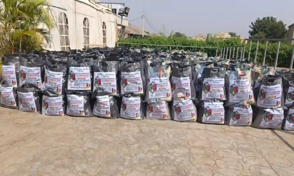 Items distributed included bags of rice, beans, semovita, groundnut oil, and ₦10,000 cash for each beneficiary.