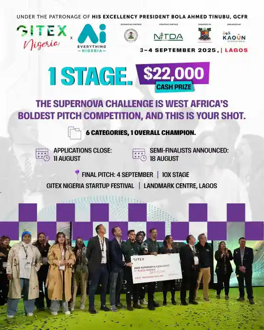 Under the patronage of His Excellency President Bola Ahmed Tinubu, GCFR, West Africa’s boldest pitch competition, the Supernova Challenge, is set to return at GITEX Nigeria with bigger rewards.