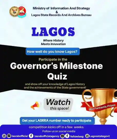 LAGOS — The Ministry of Information and Strategy, in partnership with the Lagos State Records and Archives Bureau, has announced the launch of the Governor’s Milestone Quiz Competition.