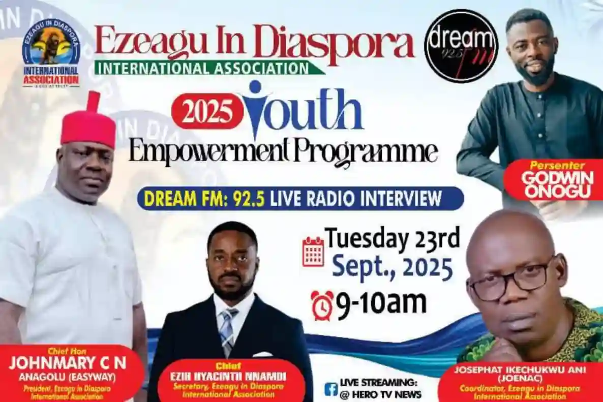 Ezeagu in Diaspora International Association (EDIA) has launched a N100 million youth empowerment programme in Enugu State to train 500 young people from Ezeagu Local Government Area in various skills and trades. The initiative was unveiled at the International Conference Centre, Enugu, and targets youths between the ages of 18 and 30. Participants will be trained in vocational, agricultural, digital, artisan, technical, trade, and sports skills.