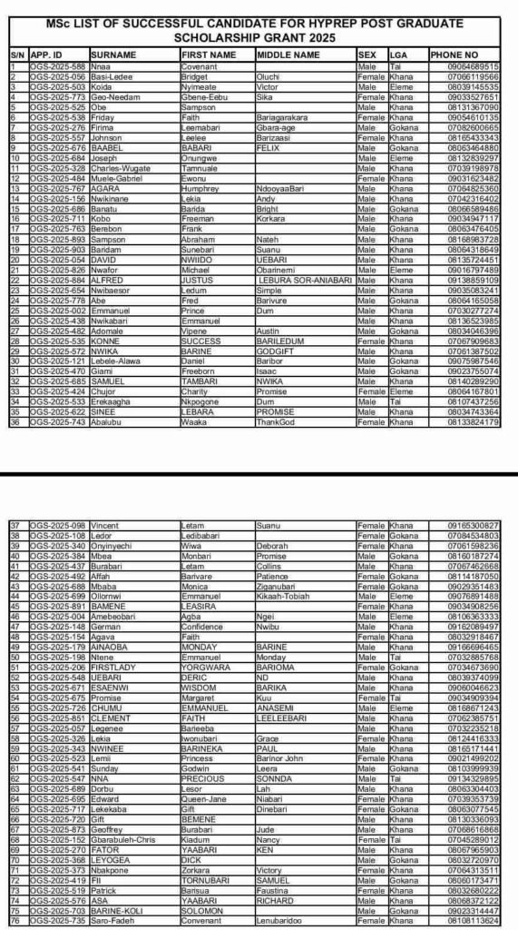 The Hydrocarbon Pollution Remediation Project (HYPREP) has released the list of successful beneficiaries for its 2026 postgraduate scholarship grant, with a total of 300 candidates selected.