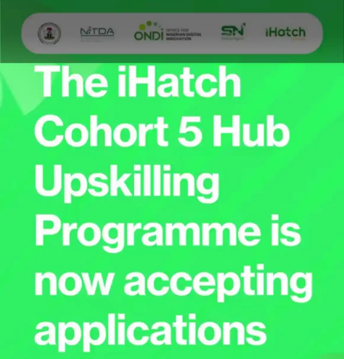 iHatch 5.0 will onboard 37 Innovation Hubs to lead structured startup training and ecosystem development efforts within their communities. Selected hubs will work closely with the National Information Technology Development Agency (NITDA) and the Office for Nigerian Digital Innovation (ONDI) to deliver high-quality incubation support. The goal is to equip early-stage founders with mentorship, practical programmes, and access to valuable networks that can accelerate their growth and sustainability.