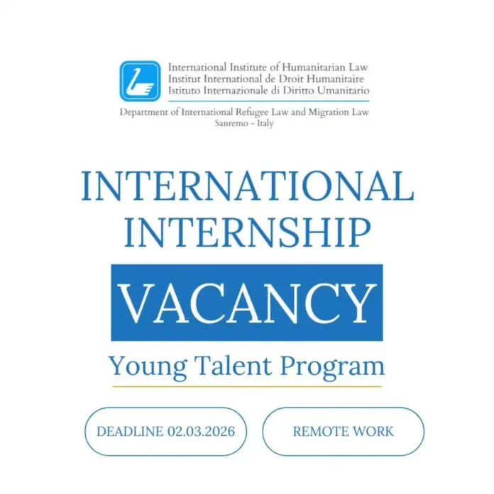 Applications are now open for the International Internship under the Young Talent Program offered by the International Refugee Law and Migration Law Department. This remote opportunity is designed for motivated students who want to gain hands-on experience in international refugee law, humanitarian affairs, and institutional engagement while contributing to meaningful global conversations.
