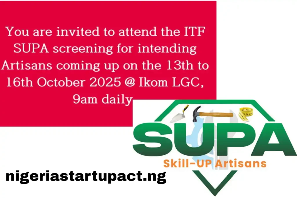 This appears to be another round of screening, likely for the new batch of applicants who applied for the SUPA programme earlier this year. One of the messages sent to candidates read, “You are invited to attend the ITF SUPA screening for intending Artisans coming up on the 13th to 16th October 2025 @ ITF Calabar Office 9am daily.”
