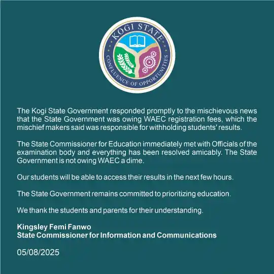 The Kogi State Government has addressed reports claiming it owed the West African Examinations Council (WAEC) registration fees, which allegedly led to the withholding of students’ results. Speaking on the matter, the State Commissioner for Education confirmed that an immediate meeting was held with WAEC officials, and the issue was resolved.