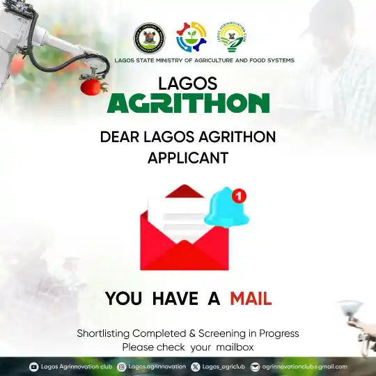 August 11, 2025 – Lagos AgriThon 2025 organisers have announced a crucial update for all applicants. In a message titled “Dear Lagos AgriThon Applicant,” participants were informed that shortlisting has been completed and screening is now in progress.