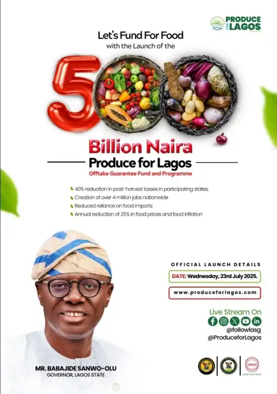 The Produce for Lagos programme introduces a guaranteed offtake system with a N500 billion fund. This fund is intended to support farmers and agri-processors by ensuring that whatever is produced gets bought and distributed efficiently.