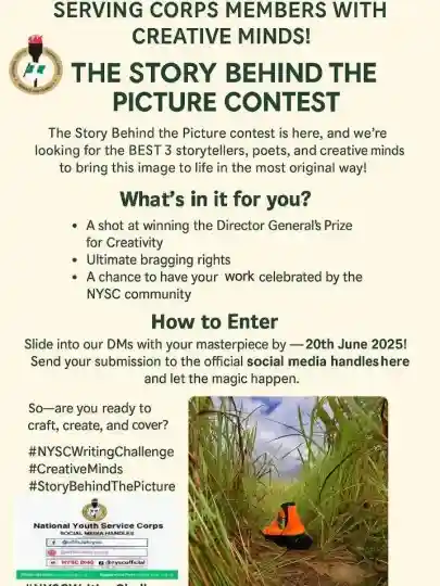 The National Youth Service Corps (NYSC) has announced a new creativity contest for serving corps members called The Story Behind the Picture. According to the organisers, “We’re looking for the BEST 3 storytellers, poets, and creative minds to bring this image to life in the most original way!”