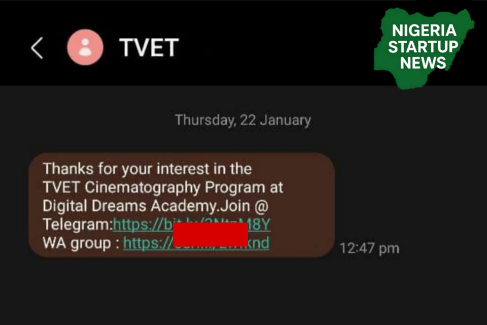 According to the message seen by applicants, the SMS invites shortlisted candidates to join the official TVET WhatsApp group created for the cinematography training. The group is designed to serve as the main communication platform for participants throughout the programme.