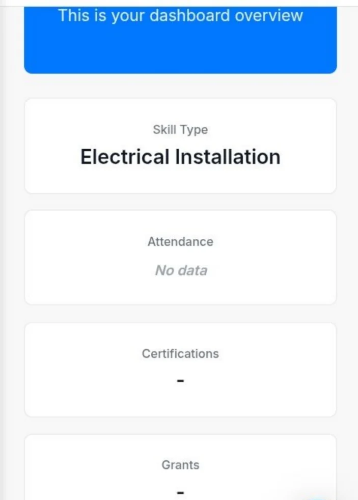 The “No Data” status typically could mean that attendance was not taken, the information has not yet been uploaded or synced, or there is a temporary system issue. Trainees affected by the situation are to confirm their attendance status with their training centre coordinator, who is responsible for capturing and uploading attendance records.