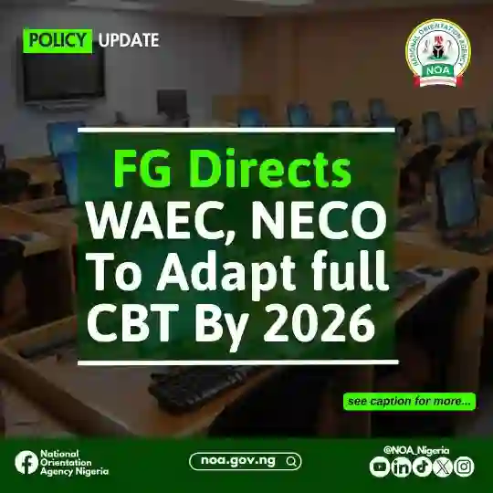 The Federal Government has directed WAEC and NECO to fully adopt Computer-Based Testing (CBT) for all exams by 2026. According to the Minister of Education, Dr. Tunji Alausa, starting November 2025, WAEC and NECO will begin using CBT for their objective tests.